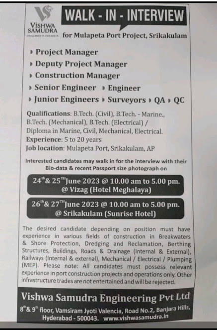 Disclaimer - This will be a platform to know about various job opportunities in civil engineering and even other branches of engineering. We are not connected with any organization. This is not a paid post and we are not promoting any company or organization. The motto for making this post is to provide job information to the job seekers.